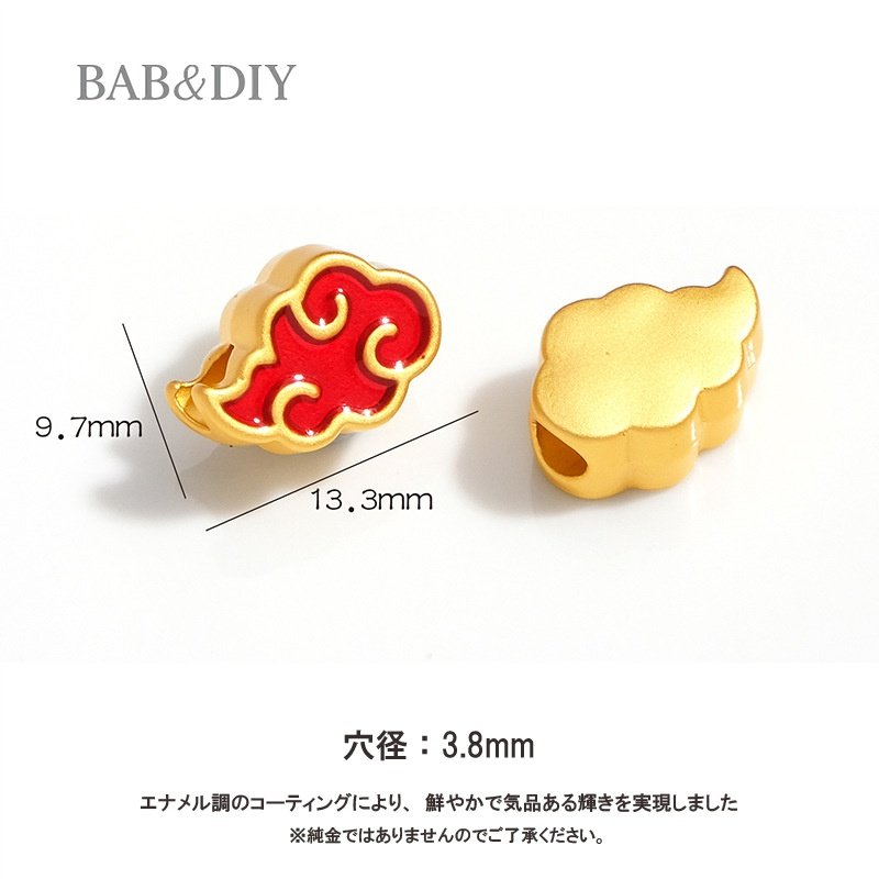 この縁起の良い瑞雲(吉兆の雲)モチーフのビーズは、中国や日本の伝統的な美術で幸運、吉兆、そして永続的な幸福を象徴する雲の形を模したDIYアクセサリーパーツです。リッチなゴールドの本体に、鮮やかな赤色の縁取りが施され、作品に深い願いを込めます。